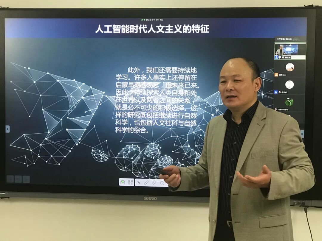 北京大学外国哲学研究所所长、教育部“长江学者”特聘教授韩水法老师主讲“人工智能时代的人文主义”。韩老师的讲座分“人工智能时代的特征”、“传统人文主义的核心”、“人的性质的变化”、“人文主义的未来关切”和“人文主义的新维度”五个部分展开。韩老师强调,“人是什么”仍然是哲学的核心问题,但在人工智能时代,人的性质——包括人的生物性质和相对地位——会发生重要变化。我们既不应当忽视这些变化,也不必对这些变化感到悲观乃至恐惧,因为自从有人类以来,人的性质就一直都在变化着。问题的关键在于正确认识这些变化,并在此基础上确立新的社会规范,建构新的正义原则等。承认人类前途的最终不确定性,与此同时又坚持人类的自主性和理性的多样性,这就是韩老师设想的人文主义的新维度的基本主张。