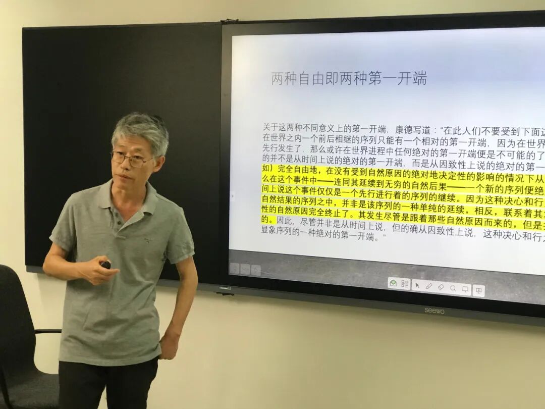 北京大学哲学系暨外国哲学研究所教授、教育部“长江学者”特聘教授韩林合老师讲授“康德哲学中的‘过度决定’问题”。韩老师在讲座中首先系统分析了康德哲学中的“自然”、“自由”、“因致性”等主要概念,并阐明了康德对人类行动结构的理解。在此基础上,韩老师引入了当代心灵哲学中的“过度决定”问题,即如果某个事件已经充分地被一个或一组事件所决定,那么它就不可能受到其他事件的决定。韩老师指出,表面上看,康德的行动理论似乎也面临类似的问题:人类行动作为现象界当中的事件,似乎已经充分地为现象界中的自然原因所决定,因此属于理智世界的“自由的因致性”就无法成为行动的原因。通过辨析康德的先验唯心论和当代心灵哲学中主流的自然主义伴生论之间的差异,韩老师认为这个问题并不构成对康德哲学的实质挑战。